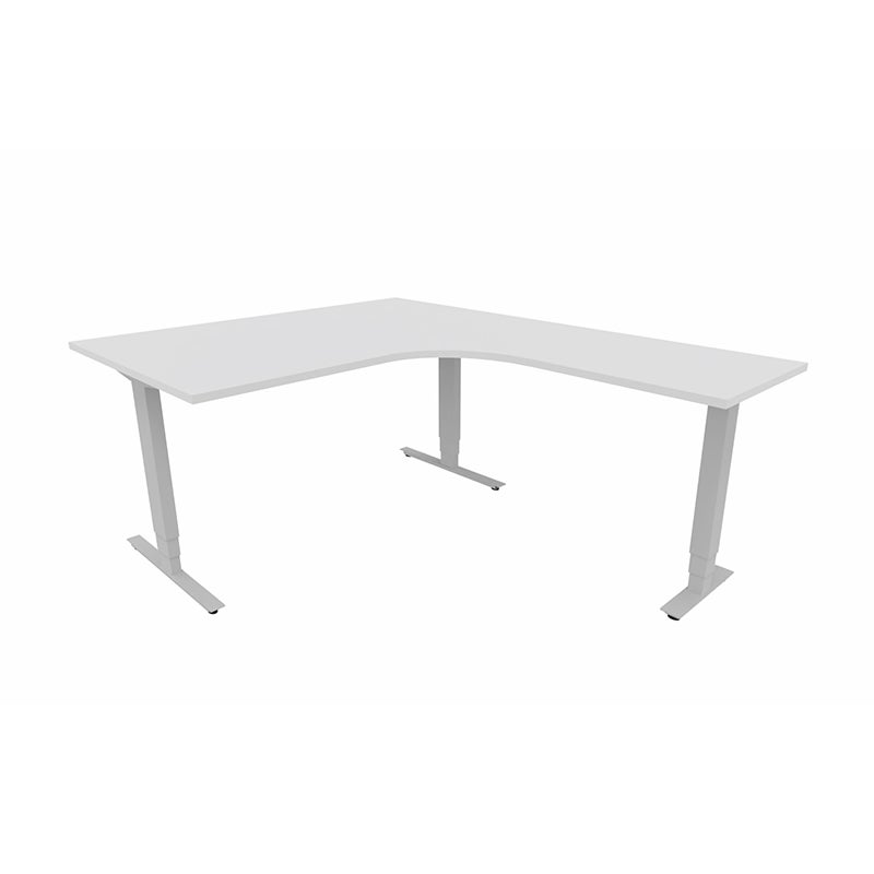 Höj- och sänkbart skrivbord Sense Aero Höger 3-ben, max 100 kg, 1400x1800, H630-1290 mm, Vit laminat, stativ Grå