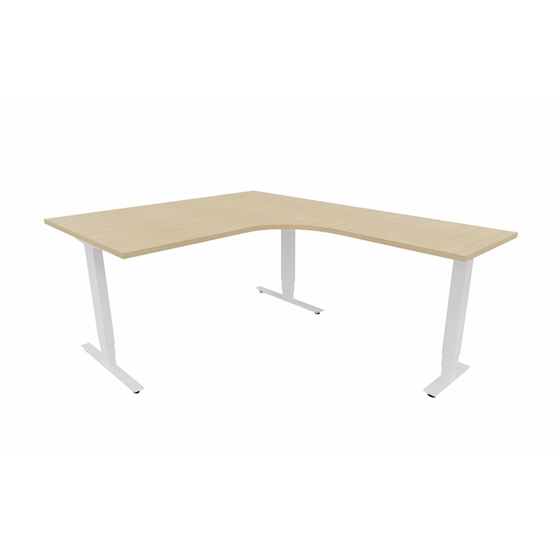 Höj- och sänkbart skrivbord Sense Aero Höger 3-ben, max 100 kg, 1400x1800, H630-1290 mm, Vit Ek laminat, stativ Vit