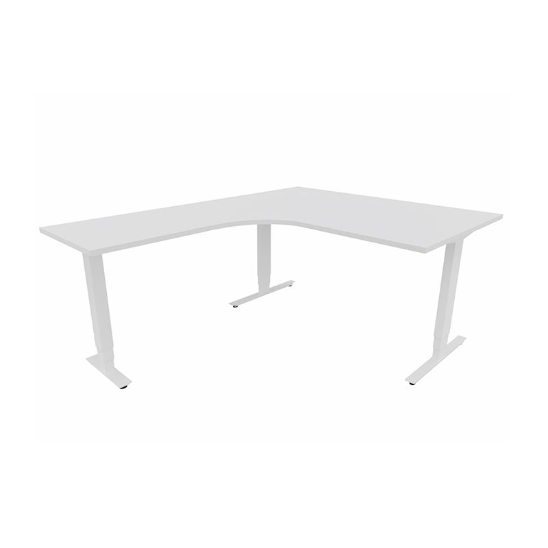 Höj- och sänkbart skrivbord Sense Aero Vänster 3-ben, max 100 kg, 1400x1800, H630-1290 mm, Vit laminat, stativ Vit