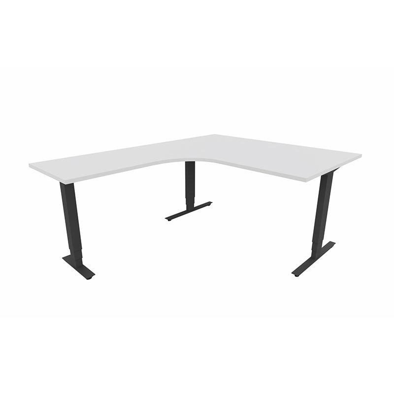 Höj- och sänkbart skrivbord Sense Aero Vänster 3-ben, max 100 kg, 1400x1800, H630-1290 mm, Vit laminat, stativ Svart