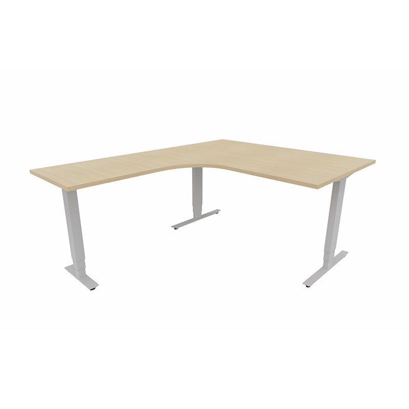 Höj- och sänkbart skrivbord Sense Aero Vänster 3-ben, max 100 kg, 1400x1800, H630-1290 mm, Vit Ek laminat, stativ Grå