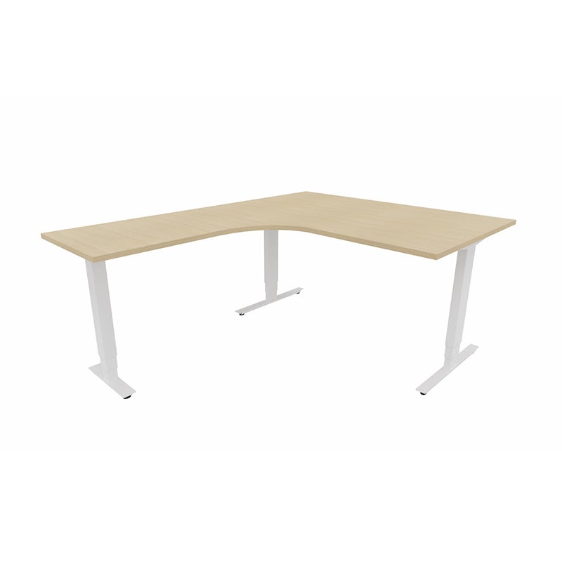 Höj- och sänkbart skrivbord Sense Aero Vänster 3-ben, max 100 kg, 1400x1800, H630-1290 mm, Vit Ek laminat, stativ Vit