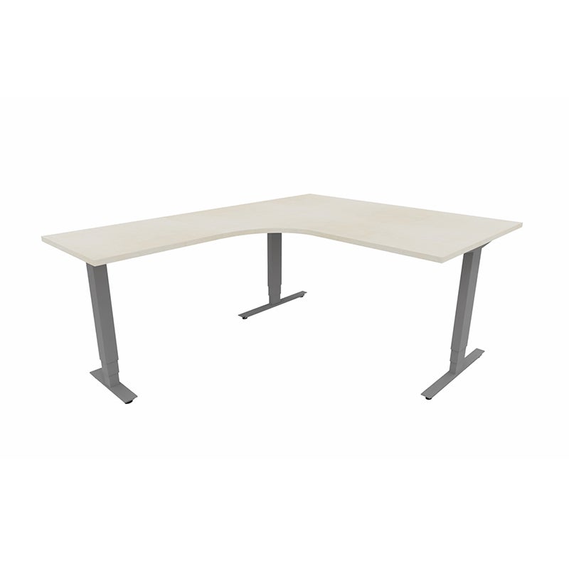Höj- och sänkbart skrivbord Sense Aero Vänster 3-ben, max 100 kg, 1400x1800, H630-1290 mm, Björk laminat, stativ Mörkgrå