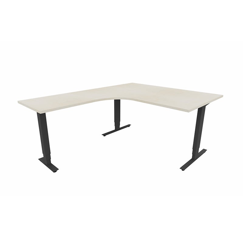 Höj- och sänkbart skrivbord Sense Aero Vänster 3-ben, max 100 kg, 1400x1800, H630-1290 mm, Björk laminat, stativ Svart