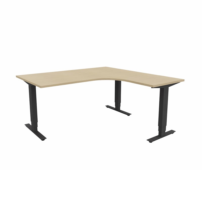 Höj- och sänkbart skrivbord Sense Aero Höger 3-ben, max 100 kg, 1600x1600, H630-1290 mm, Vit Ek laminat, stativ Svart