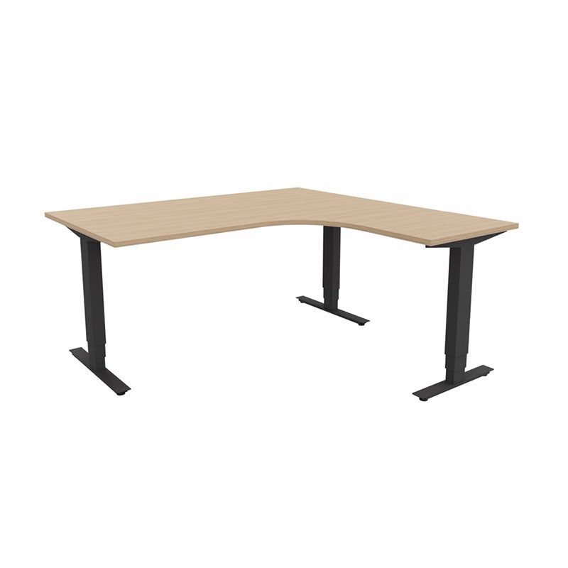 Höj- och sänkbart skrivbord Sense Aero Höger 3-ben, max 100 kg, 1600x1600, H630-1290 mmm, Amber Ek laminat, stativ Svart