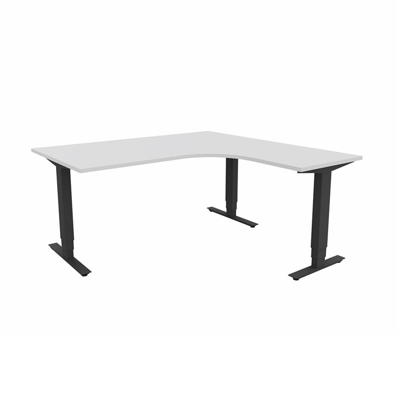 Höj- och sänkbart skrivbord Sense Aero Höger 3-ben, max 100 kg, 1600x1600, H630-1290 mm, Vit laminat, stativ Svart