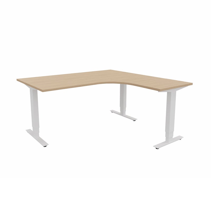 Höj- och sänkbart skrivbord Sense Aero Höger 3-ben, max 100 kg, 1600x1600, H630-1290 mm, Amber Ek laminat, stativ Vit