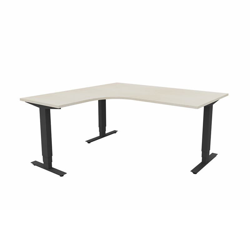 Höj- och sänkbart skrivbord Sense Aero Vänster 3-ben, max 100 kg, 1600x1600, H630-1290 mm, Björk laminat, stativ Svart