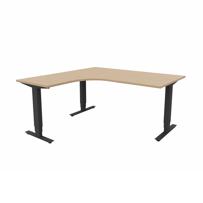 Höj- och sänkbart skrivbord Sense Aero Vänster 3-ben, max 100 kg, 1600x1600, H630-1290 mmm, Amber Ek laminat, stativ Svart