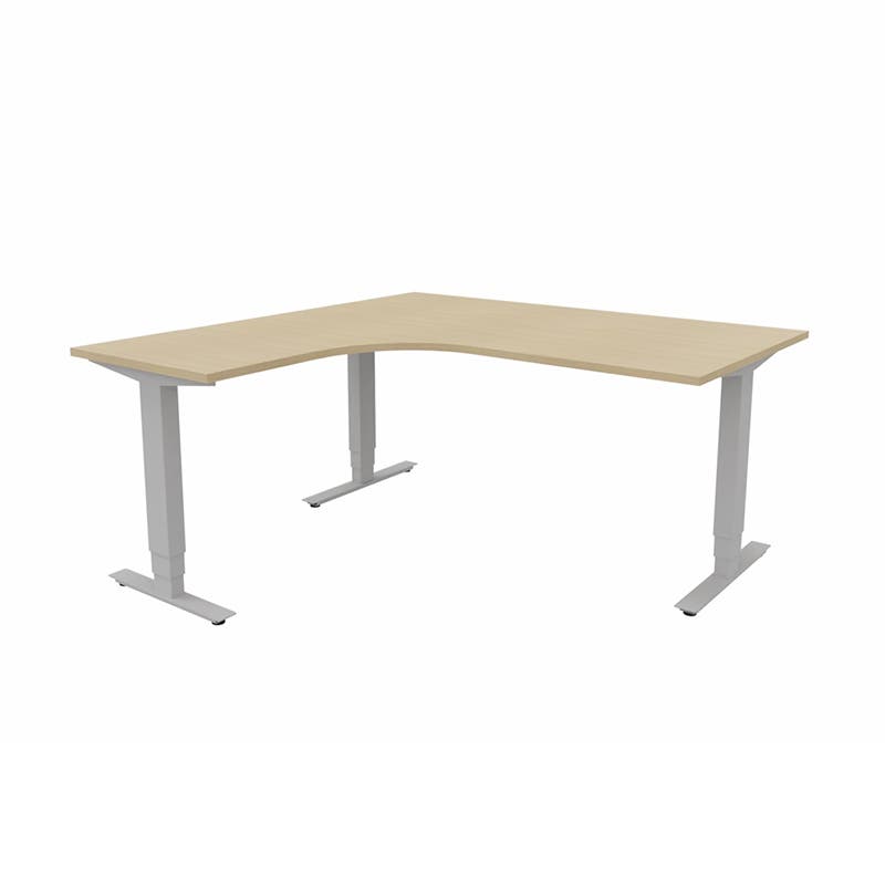Höj- och sänkbart skrivbord Sense Aero Vänster 3-ben, max 100 kg, 1600x1600, H630-1290 mm, Vit Ek laminat, stativ Grå