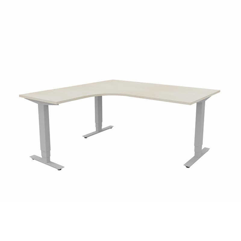 Höj- och sänkbart skrivbord Sense Aero Vänster 3-ben, max 100 kg, 1600x1600, H630-1290 mm, Björk laminat, stativ Grå