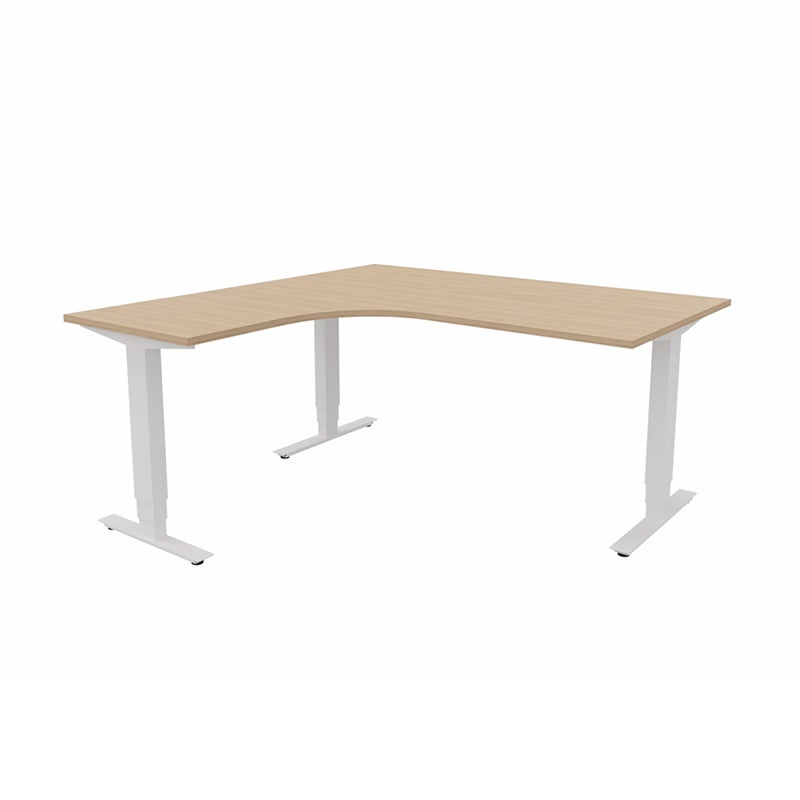 Höj- och sänkbart skrivbord Sense Aero Vänster 3-ben, max 100 kg, 1600x1600, H630-1290 mm, Amber Ek laminat, stativ Vit
