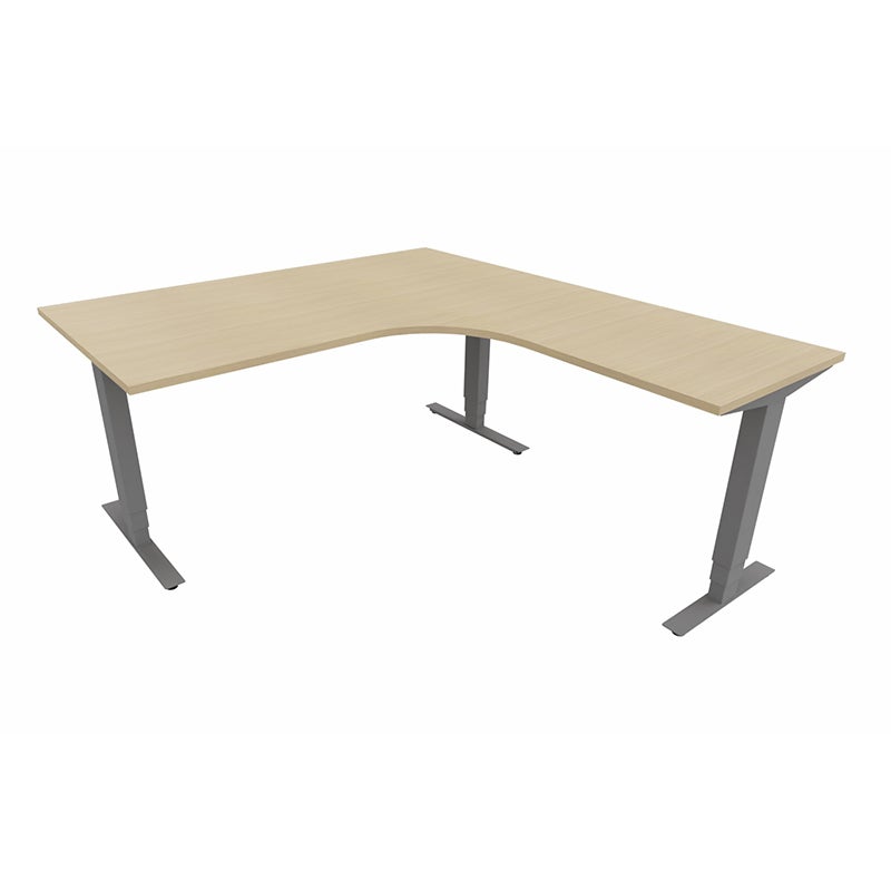 Höj- och sänkbart skrivbord Sense Aero Höger 3-ben, max 100 kg, 1600x1800, H630-1290 mm, Vit Ek laminat, stativ Mörkgrå