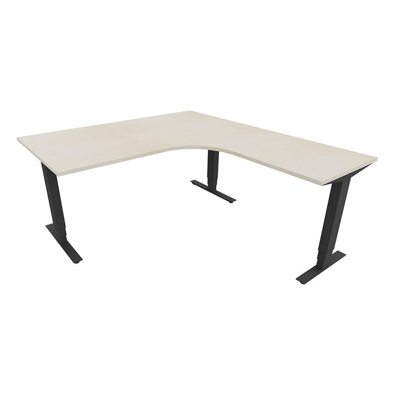 Höj- och sänkbart skrivbord Sense Aero Höger 3-ben, max 100 kg, 1600x1800, H630-1290 mm, Björk laminat, stativ Svart