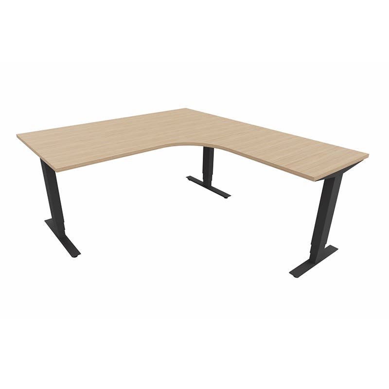 Höj- och sänkbart skrivbord Sense Aero Höger 3-ben, max 100 kg, 1600x1800, H630-1290 mmm, Amber Ek laminat, stativ Svart