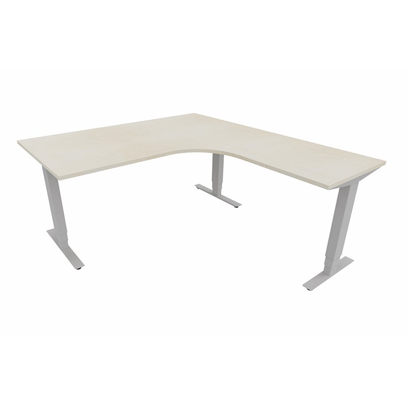 Höj- och sänkbart skrivbord Sense Aero Höger 3-ben, max 100 kg, 1600x1800, H630-1290 mm, Björk laminat, stativ Grå