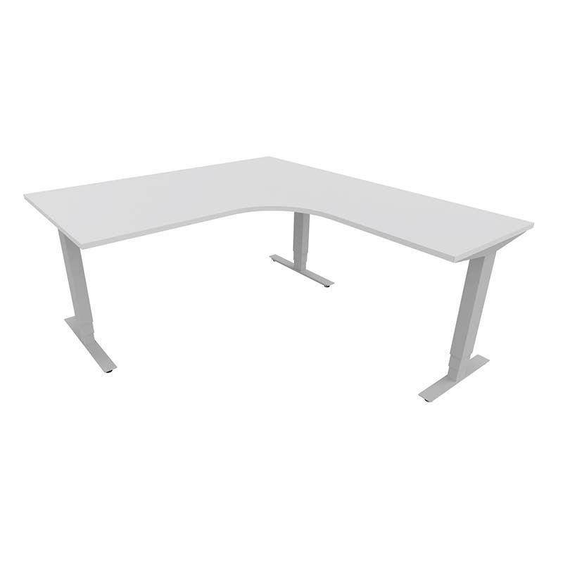 Höj- och sänkbart skrivbord Sense Aero Höger 3-ben, max 100 kg, 1600x1800, H630-1290 mm, Vit laminat, stativ Grå