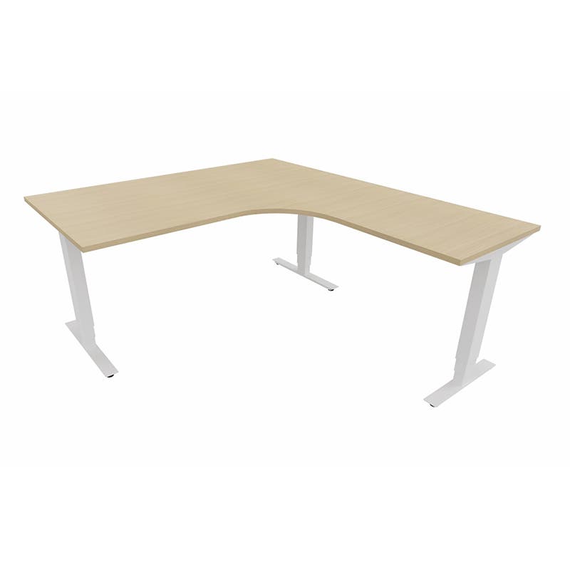 Höj- och sänkbart skrivbord Sense Aero Höger 3-ben, max 100 kg, 1600x1800, H630-1290 mm, Vit Ek laminat, stativ Vit