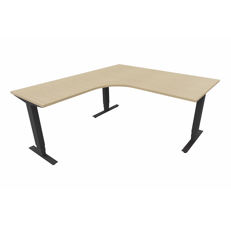 Höj- och sänkbart skrivbord Sense Aero Vänster 3-ben, max 100 kg, 1600x1800, H630-1290 mm, Vit Ek laminat, stativ Svart