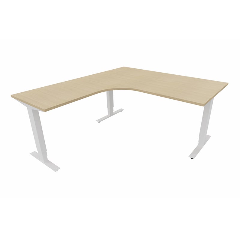 Höj- och sänkbart skrivbord Sense Aero Vänster 3-ben, max 100 kg, 1600x1800, H630-1290 mm, Vit Ek laminat, stativ Vit