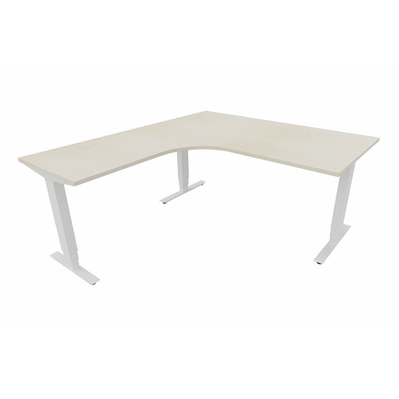Höj- och sänkbart skrivbord Sense Aero Vänster 3-ben, max 100 kg, 1600x1800, H630-1290 mm, Björk laminat, stativ Vit