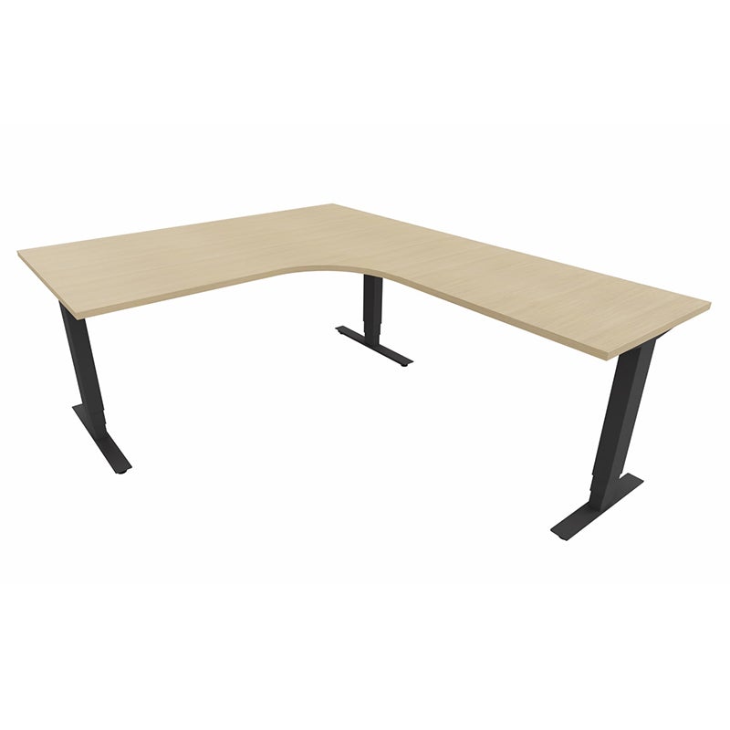 Höj- och sänkbart skrivbord Sense Aero Höger 3-ben, max 100 kg, 1600x2000, H630-1290 mm, Vit Ek laminat, stativ Svart