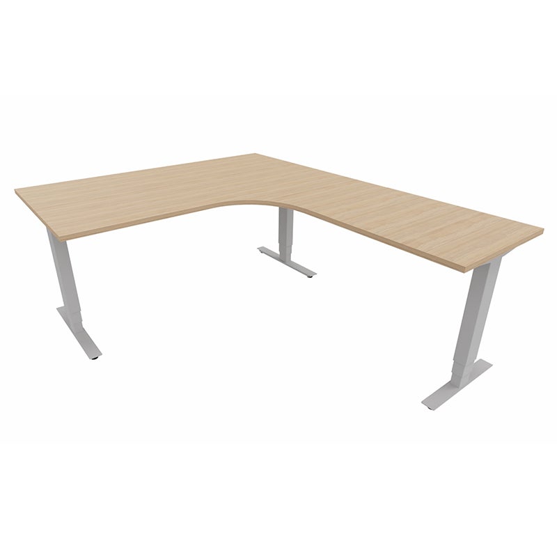 Höj- och sänkbart skrivbord Sense Aero Höger 3-ben, max 100 kg, 1600x2000, H630-1290 mm, Amber Ek laminat, stativ Grå