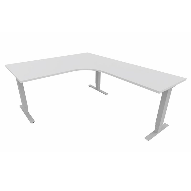 Höj- och sänkbart skrivbord Sense Aero Höger 3-ben, max 100 kg, 1600x2000, H630-1290 mm, Vit laminat, stativ Grå