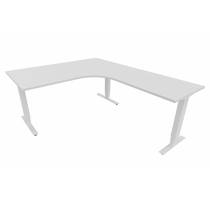 Höj- och sänkbart skrivbord Sense Aero Höger 3-ben, max 100 kg, 1600x2000, H630-1290 mm, Vit laminat, stativ Vit