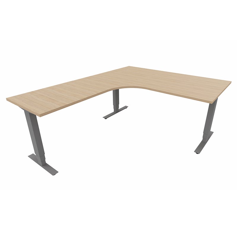 Höj- och sänkbart skrivbord Sense Aero Vänster 3-ben, max 100 kg, 1600x2000, H630-1290 mm, Amber Ek laminat, stativ Mörkgrå