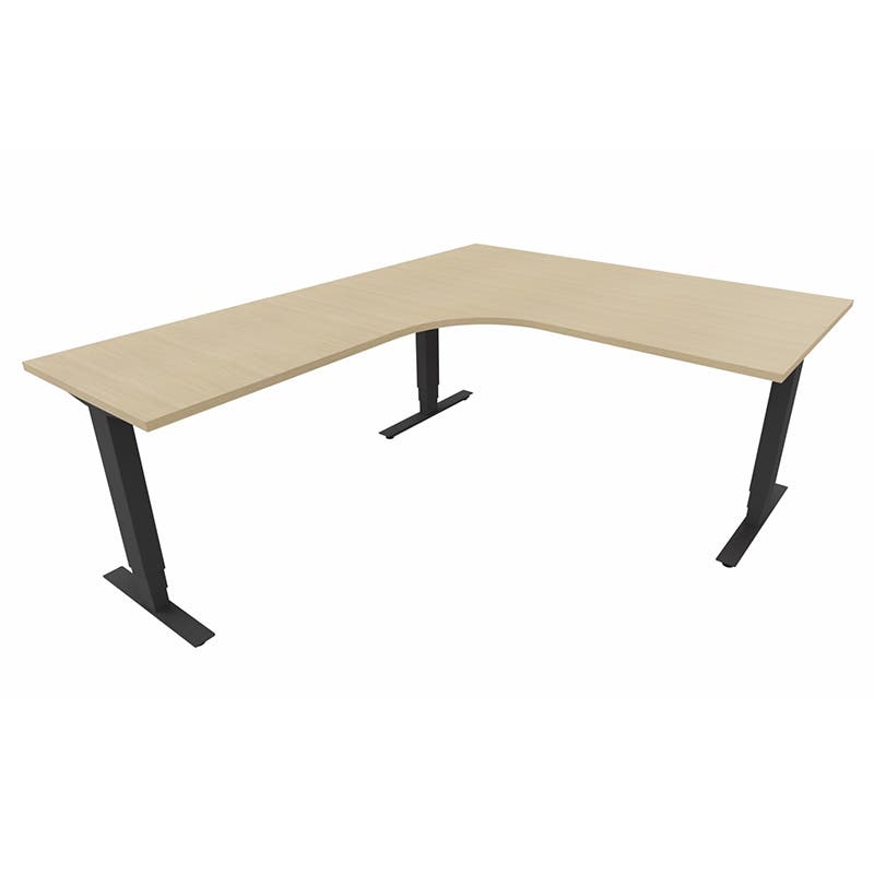 Höj- och sänkbart skrivbord Sense Aero Vänster 3-ben, max 100 kg, 1600x2000, H630-1290 mm, Vit Ek laminat, stativ Svart