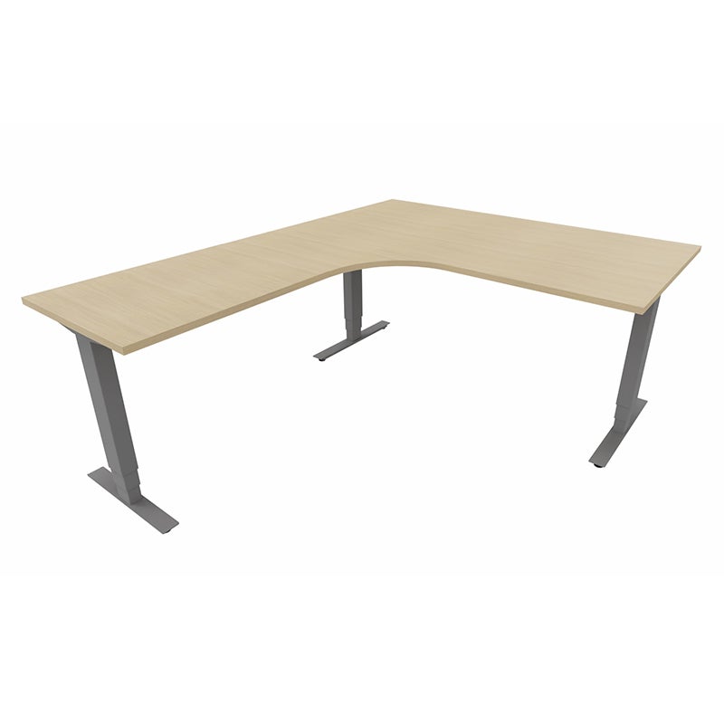 Höj- och sänkbart skrivbord Sense Aero Vänster 3-ben, max 100 kg, 1600x2000, H630-1290 mm, Vit Ek laminat, stativ Mörkgrå