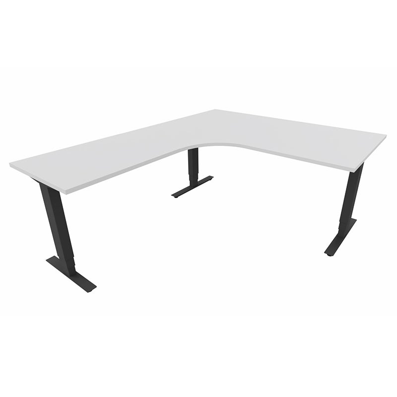 Höj- och sänkbart skrivbord Sense Aero Vänster 3-ben, max 100 kg, 1600x2000, H630-1290 mm, Vit laminat, stativ Svart