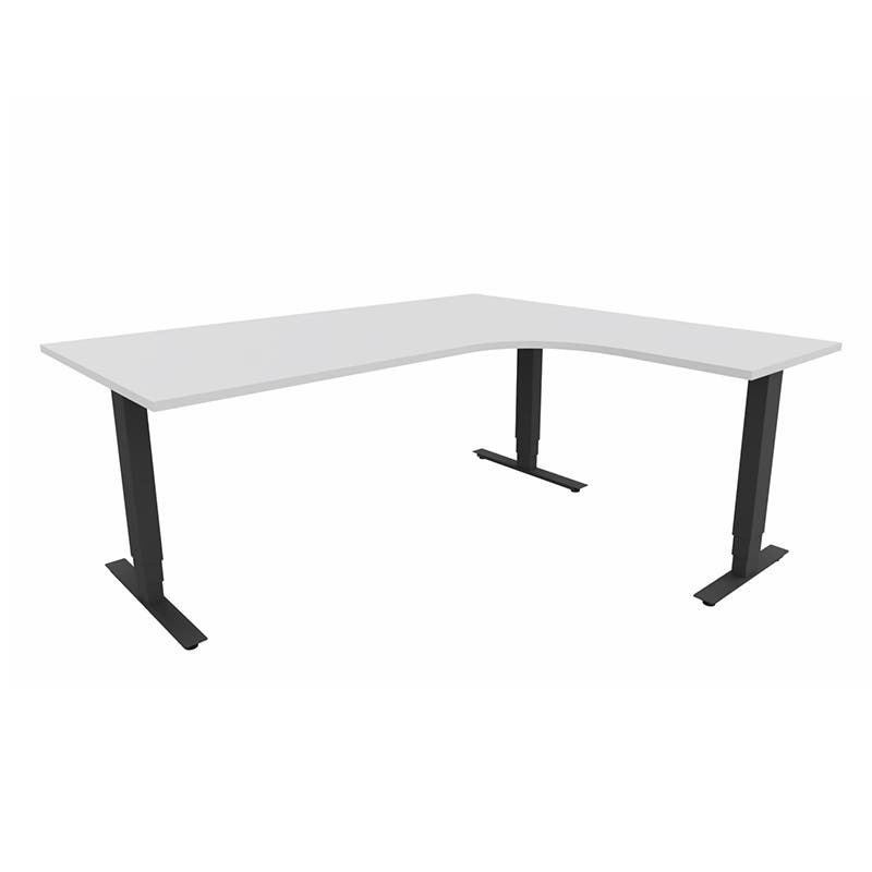 Höj- och sänkbart skrivbord Sense Aero Höger 3-ben, max 100 kg, 1800x1600, H630-1290 mm, Vit laminat, stativ Svart