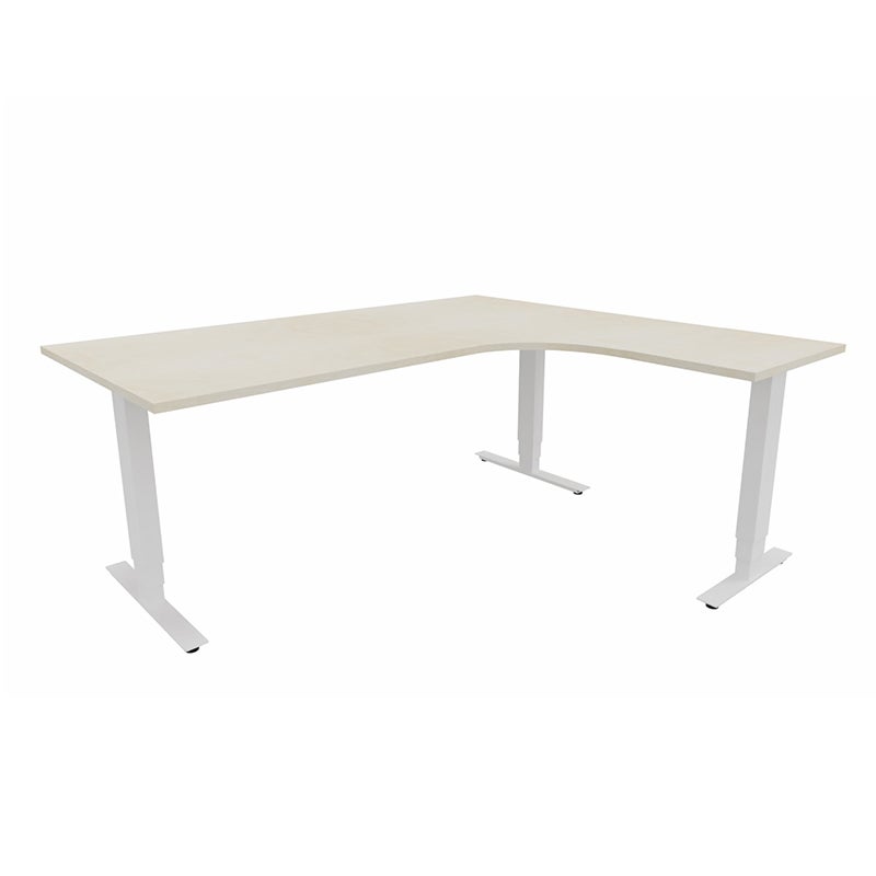 Höj- och sänkbart skrivbord Sense Aero Höger 3-ben, max 100 kg, 1800x1600, H630-1290 mm, Björk laminat, stativ Vit