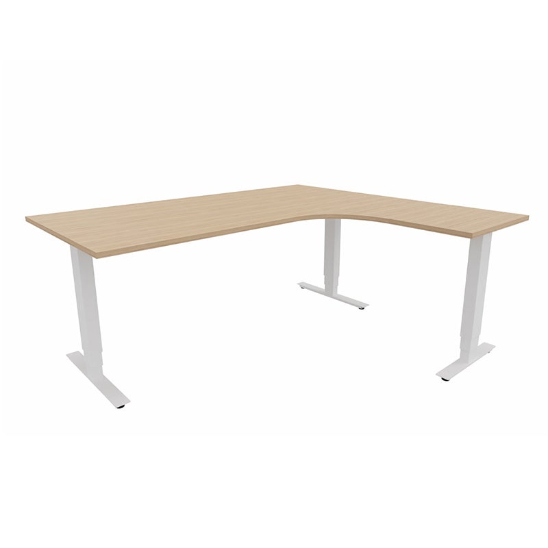 Höj- och sänkbart skrivbord Sense Aero Höger 3-ben, max 100 kg, 1800x1600, H630-1290 mm, Amber Ek laminat, stativ Vit