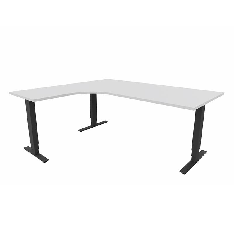 Höj- och sänkbart skrivbord Sense Aero Vänster 3-ben, max 100 kg, 1800x1600, H630-1290 mm, Vit laminat, stativ Svart