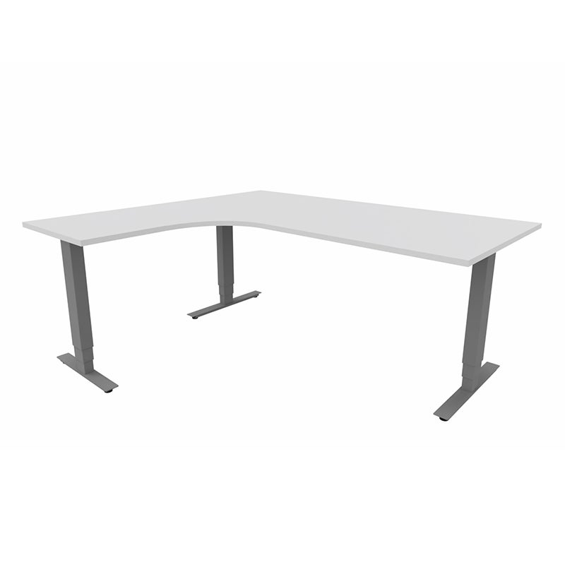 Höj- och sänkbart skrivbord Sense Aero Vänster 3-ben, max 100 kg, 1800x1600, H630-1290 mm, Vit laminat, stativ Mörkgrå