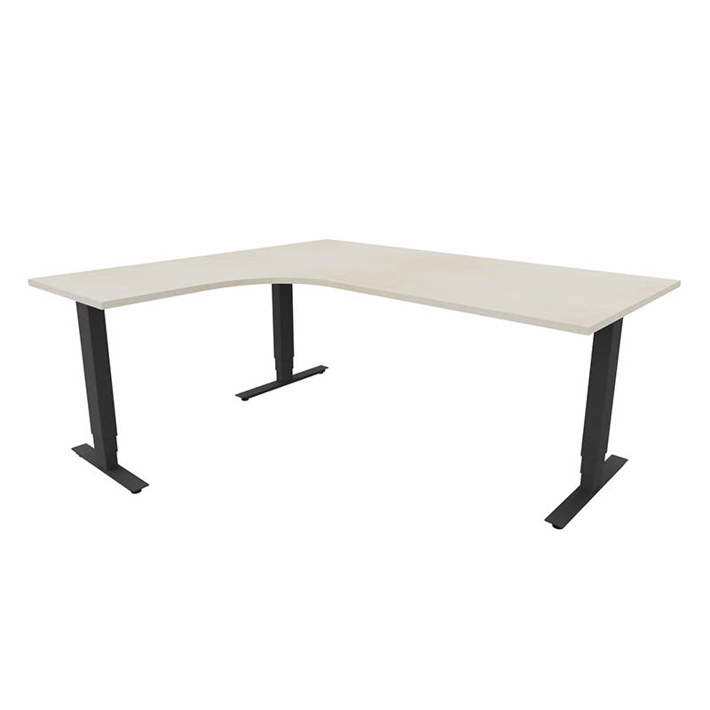Höj- och sänkbart skrivbord Sense Aero Vänster 3-ben, max 100 kg, 1800x1600, H630-1290 mm, Björk laminat, stativ Svart