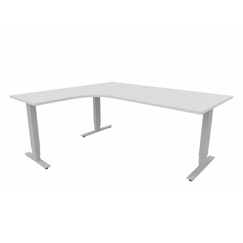 Höj- och sänkbart skrivbord Sense Aero Vänster 3-ben, max 100 kg, 1800x1600, H630-1290 mm, Vit laminat, stativ Grå