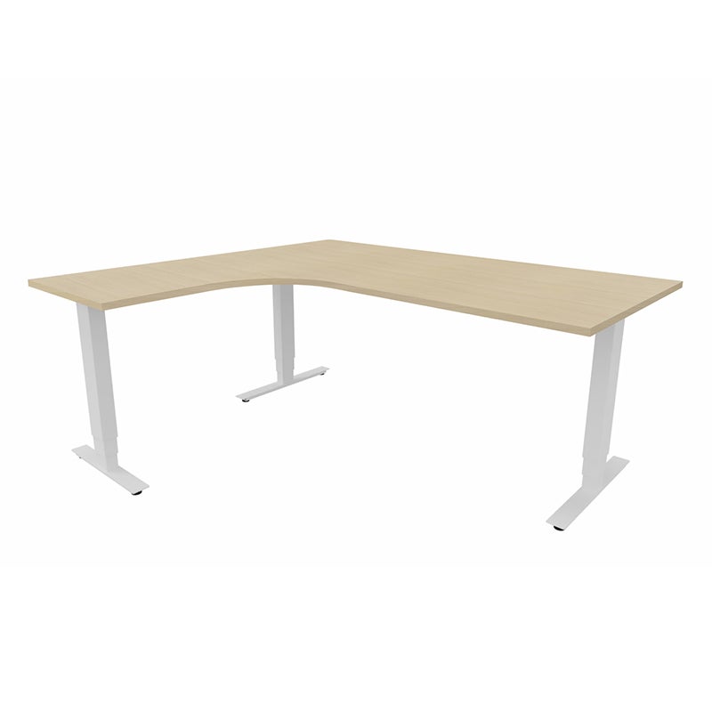 Höj- och sänkbart skrivbord Sense Aero Vänster 3-ben, max 100 kg, 1800x1600, H630-1290 mm, Vit Ek laminat, stativ Vit