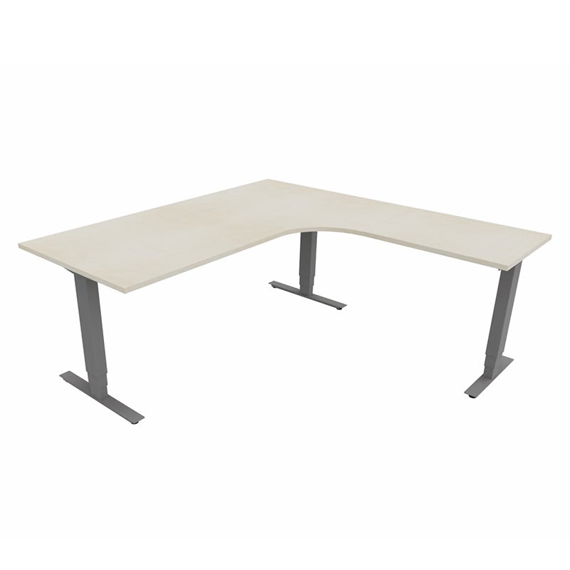 Höj- och sänkbart skrivbord Sense Aero Höger 3-ben, max 100 kg, 1800x1800, H630-1290 mm, Björk laminat, stativ Mörkgrå