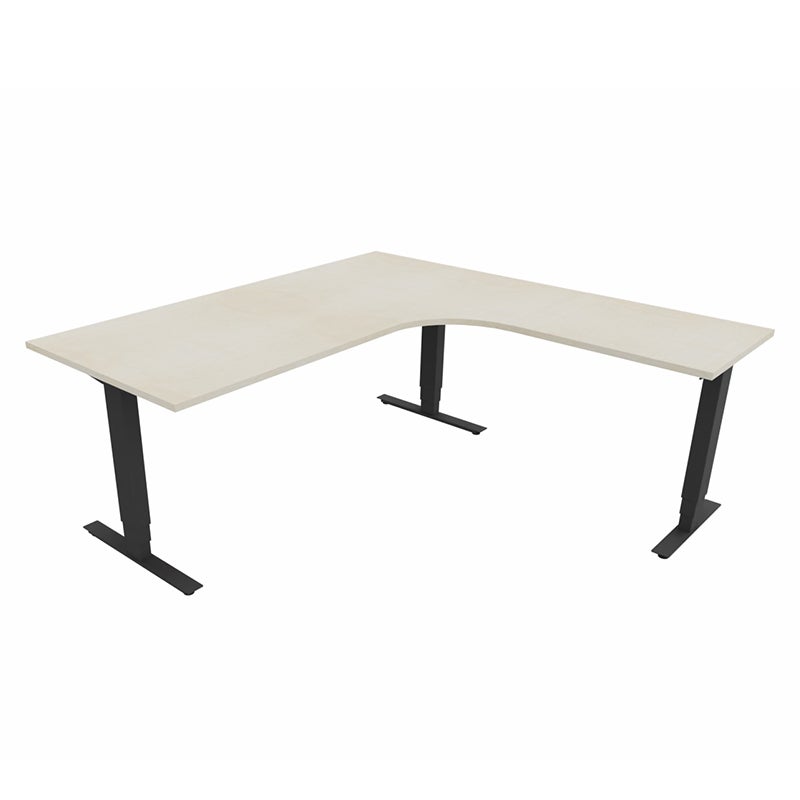 Höj- och sänkbart skrivbord Sense Aero Höger 3-ben, max 100 kg, 1800x1800, H630-1290 mm, Björk laminat, stativ Svart