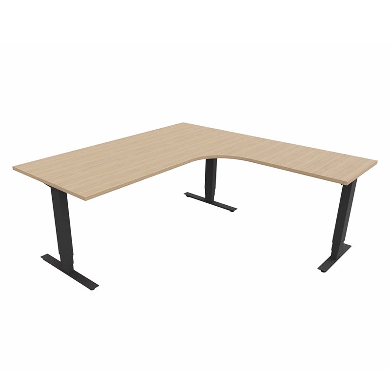 Höj- och sänkbart skrivbord Sense Aero Höger 3-ben, max 100 kg, 1800x1800, H630-1290 mmm, Amber Ek laminat, stativ Svart