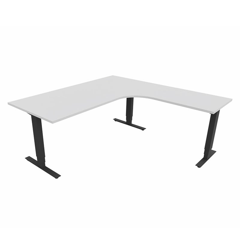 Höj- och sänkbart skrivbord Sense Aero Höger 3-ben, max 100 kg, 1800x1800, H630-1290 mm, Vit laminat, stativ Svart