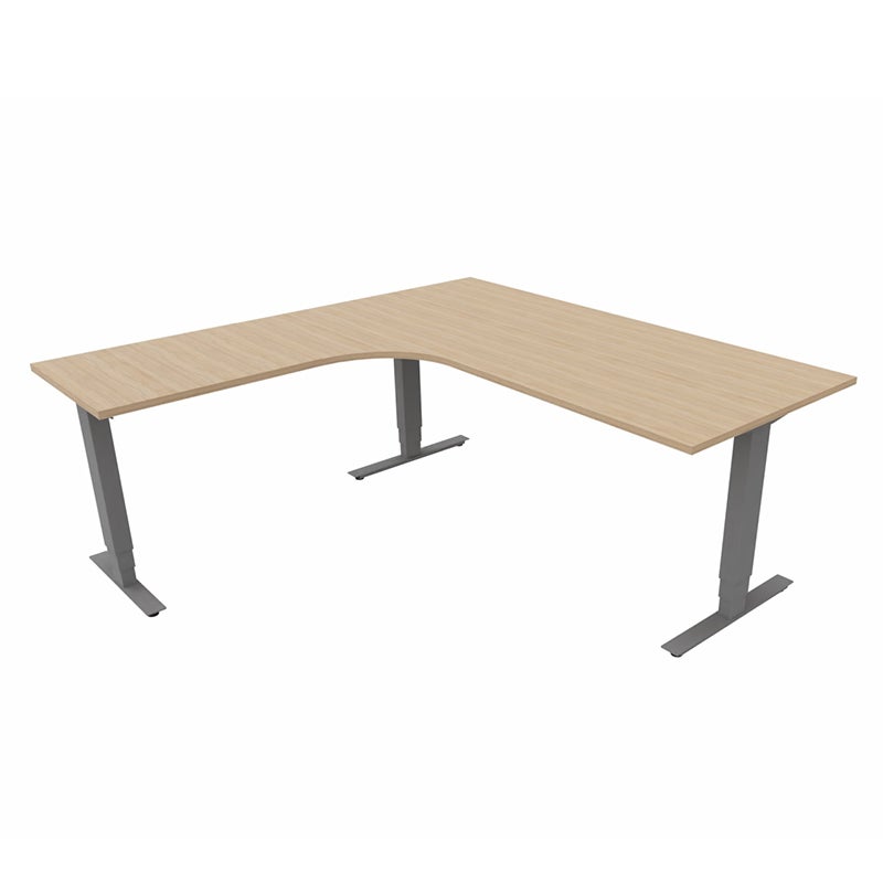 Höj- och sänkbart skrivbord Sense Aero Vänster 3-ben, max 100 kg, 1800x1800, H630-1290 mm, Amber Ek laminat, stativ Mörkgrå