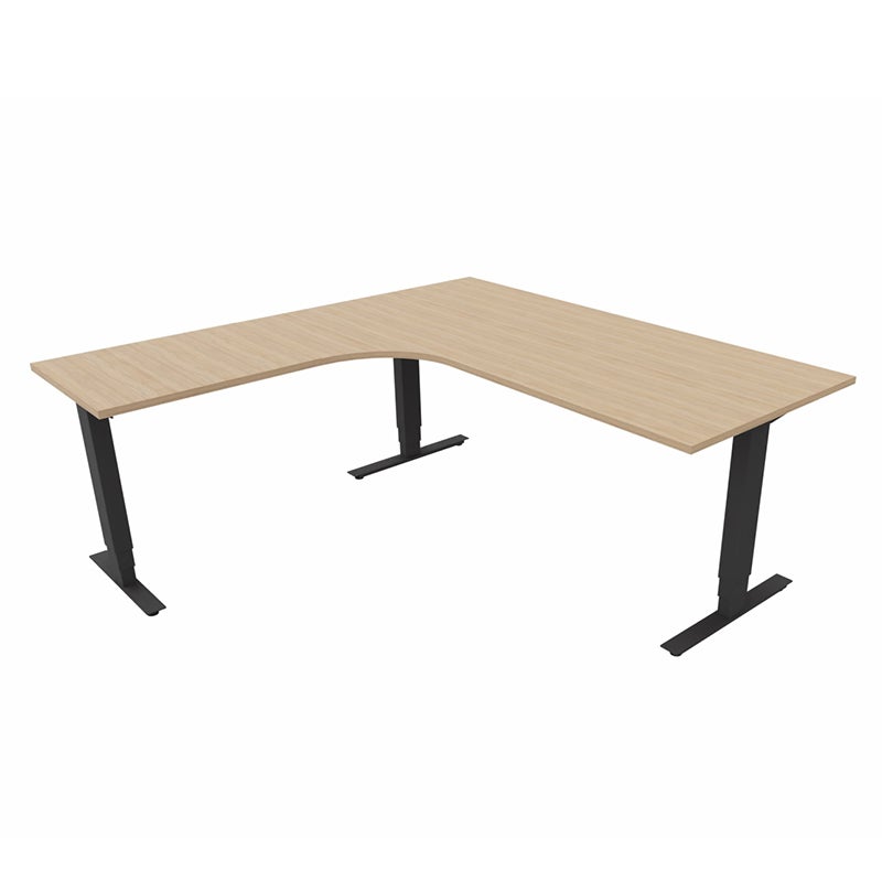 Höj- och sänkbart skrivbord Sense Aero Vänster 3-ben, max 100 kg, 1800x1800, H630-1290 mmm, Amber Ek laminat, stativ Svart
