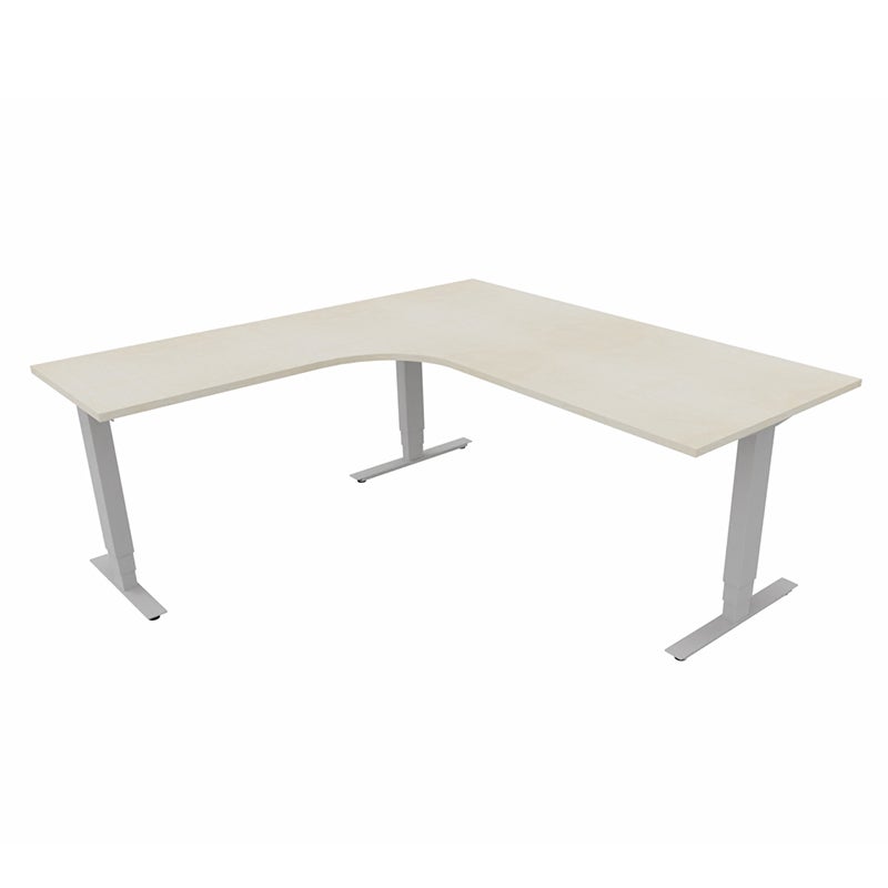Höj- och sänkbart skrivbord Sense Aero Vänster 3-ben, max 100 kg, 1800x1800, H630-1290 mm, Björk laminat, stativ Grå