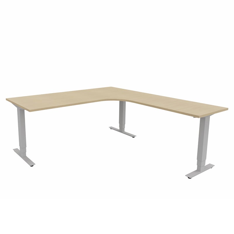Höj- och sänkbart skrivbord Sense Aero Höger 3-ben, max 100 kg, 1800x2000, H630-1290 mm, Vit Ek laminat, stativ Mörkgrå